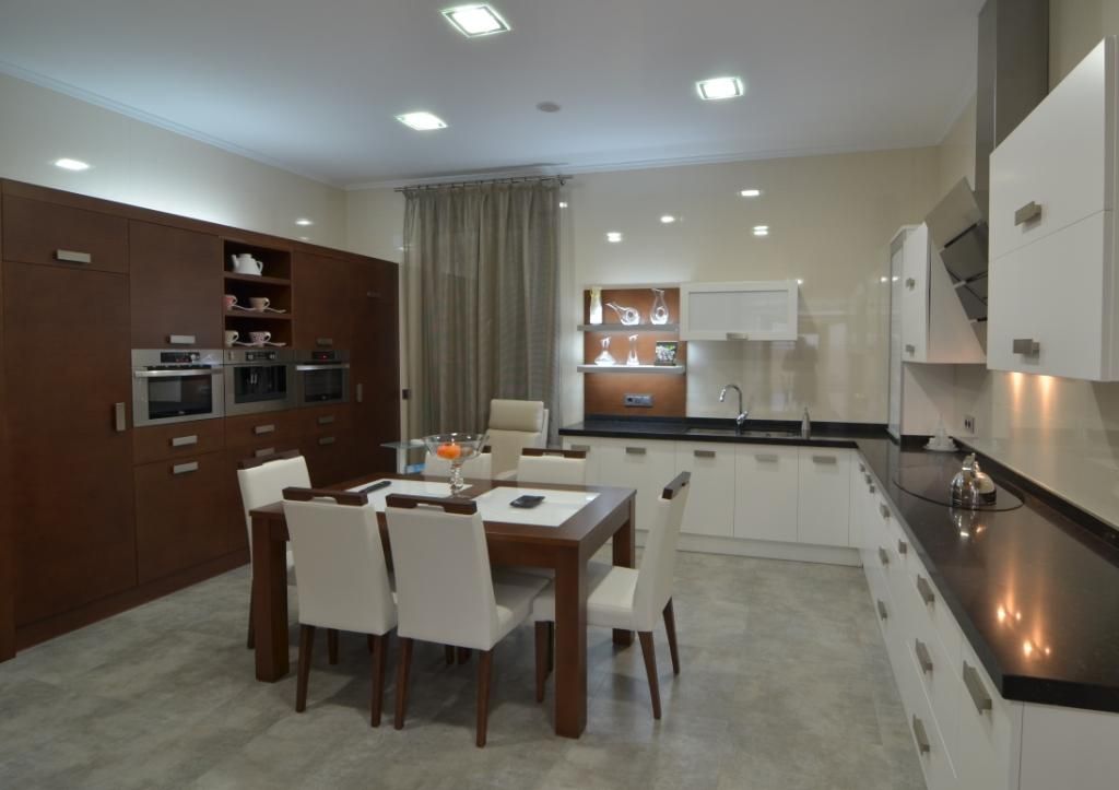 Cocina lacada combinada con madera