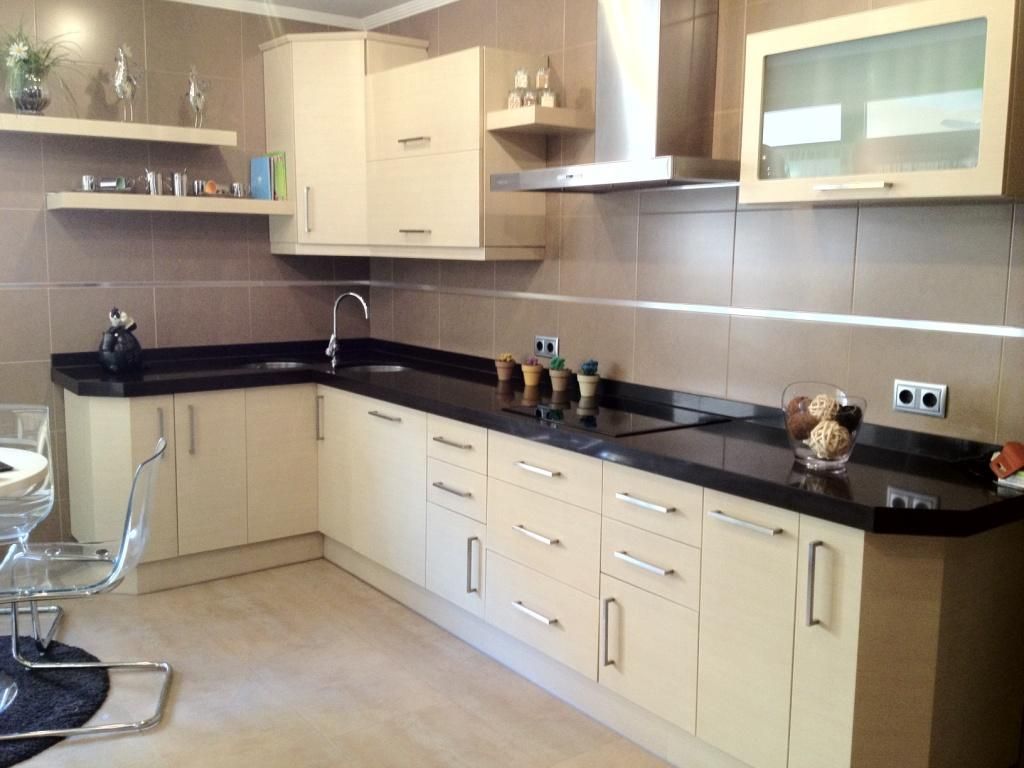 Madera Roble unificado combinado con Silestone Negro Tebas